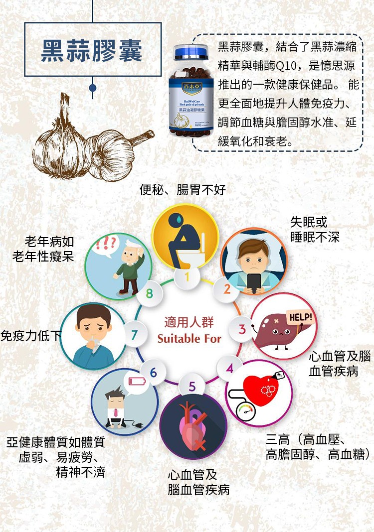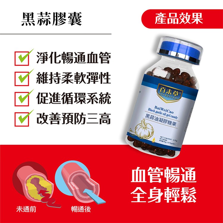 百未草黑蒜油凝膠糖果添加黑蒜具有降低血糖,預防心腦血管疾病,促使血管舒張,調節血壓,新增血管的通透性,從而抑制血栓的形成和預防動脈硬化。黑蒜油凝膠糖果能降三高護心腦,讓心腦血管病不再犯,清理血栓效果較好,溶解血栓的療效,有效控制及預防血栓形成。